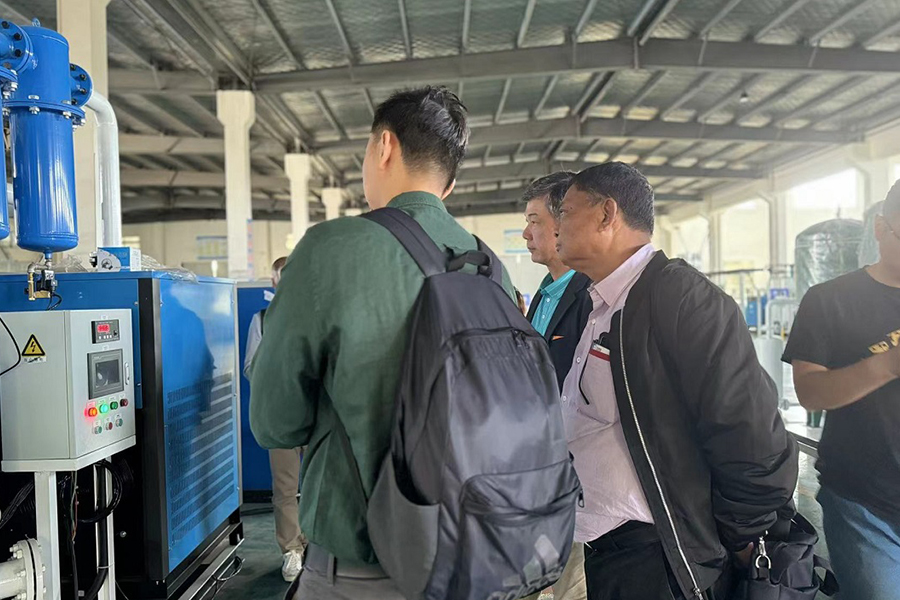 Som visas på bilderna tillhandahöll vårt företags chef varma gästfrihet till kunderna under hela besöket. Vår chef, en ingenjör med 25 års erfarenhet av luftseparationsutrustning, utarbetade vår utrustning i detalj för kunderna. För att förbättra kundens förtroende startade vi utrustningen på webbplatsen, vilket gjorde det möjligt för kunderna att direkt observera renheten i vår syregenerator. Kunderna uttryckte sitt fulla godkännande av vår utrustning.